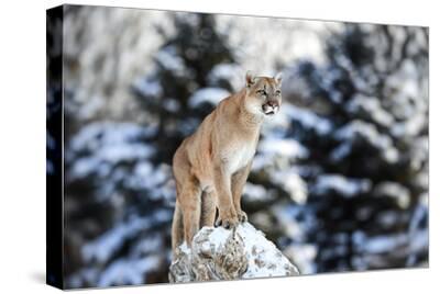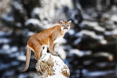 Portrait Of Beautiful Puma Cougar Mountain Lion Puma Panther Striking Pose Winter Scene In Th Photographic Print Baranov E Allposters Com